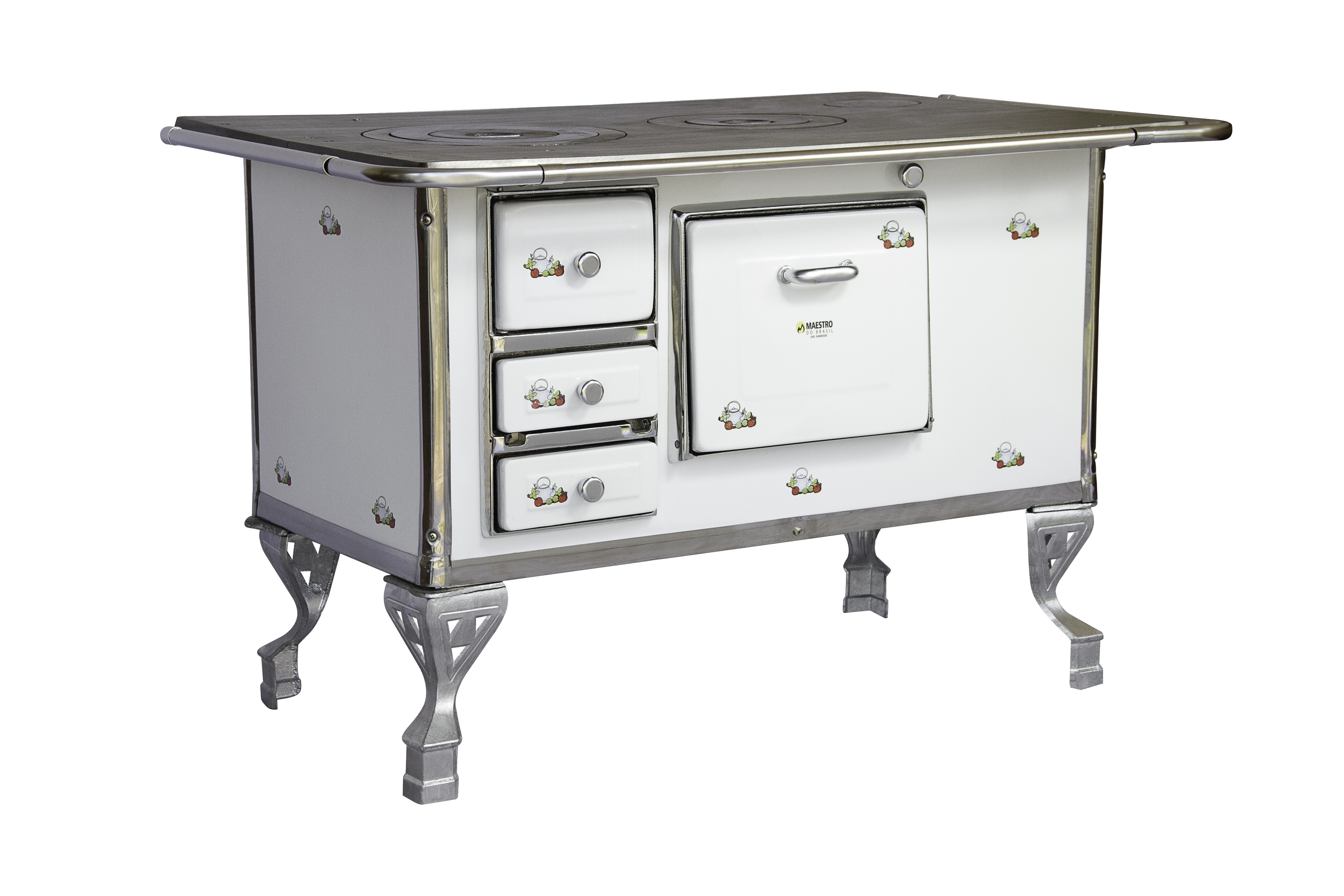 FOGÃO A LENHA MAESTRO Nº 3 - BRANCO - DECORADO